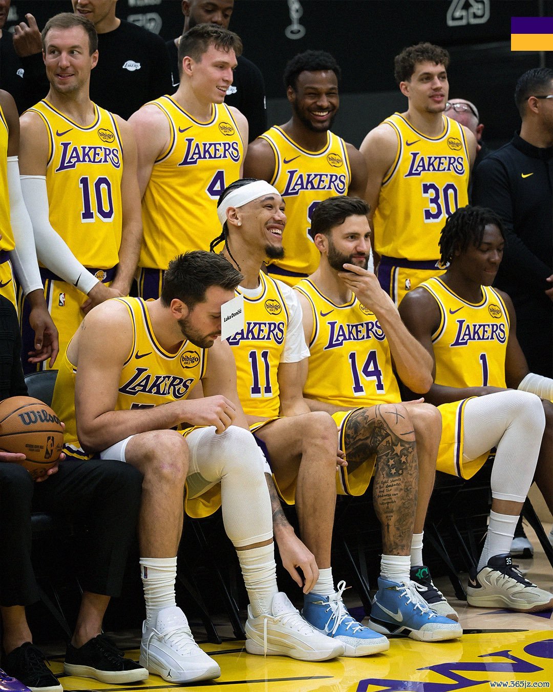 湖人全队已经拍摄全家福;在湖人大合影上,湖人篮球运营总裁和总经理佩林卡抱球坐在C位,东契奇和詹姆斯坐在佩总两侧,坐在第一排的球员还有艾顿、范德比尔特、蒂米、海斯、克勒贝尔和阿杜-蒂耶罗。