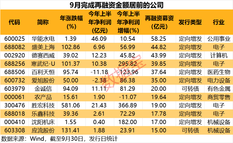 9月份A股再融资完成规模环比增近30% 6家公司募资超35亿元9月份A股再融资完成规模环比增近30% 6家公司募资超35亿元
