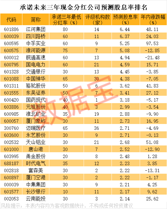 未来三年现金分红公司预测股息率排名亿策略未来三年现金分红公司预测股息率排名